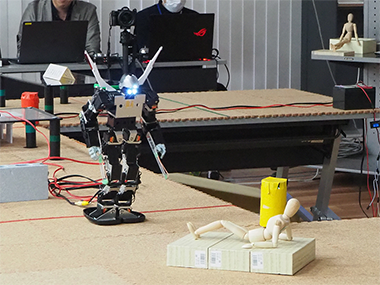 2019年のヒト型レスキューロボットコンテストでは、目視部門に3名、搭載カメラ部門に1名の学生が参加し、LEDライト付きカメラを頭部に取り付ける工夫をすることで、見事搭載カメラ部門3位に入賞することができました。