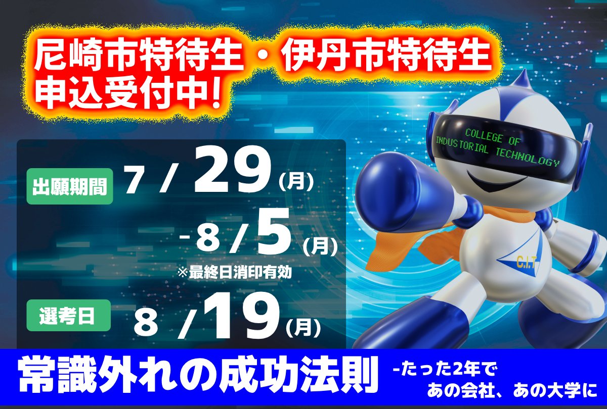 尼崎市・伊丹市における産業技術短期大学特待生の追加募集について【応募期間:2025年1月6日(月)~1月16日(木)】