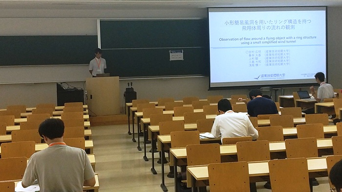 発表(1):小型簡易風洞を用いたリング構造を持つ飛翔体周りの流れの観測