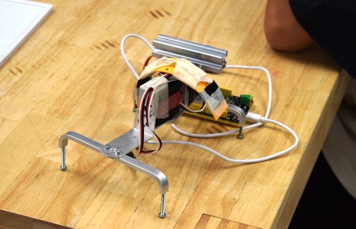 脚の構造や摩擦の影響を考えながら、トカゲ型ロボットの動作を比較・検討。力学の視点から性能向上を目指しています。