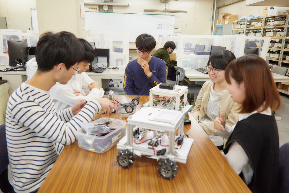電気、電子を使ってないというところは、皆無と言っていいほどあらゆるところで、使われています。電気電子工学科で学ぶということは、そのあらゆることに貢献できる技術者を目指すということです。みなさんの挑戦を待っています。